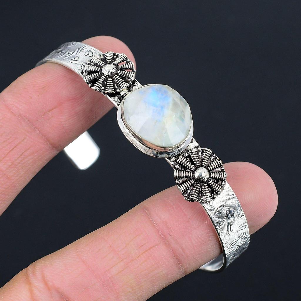 Womens day Deal Sterling Silver Natural Rainbow Moonstone Wedding Bangle Jewelry