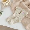 Female Autumn New Embroidery Bow-dot Cartoon Animal Cute Flanging Tube Pile Socks