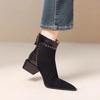 Inner heightening pointed short boots women's autumn and winter new suede splicing retro versatile comfortable commuting simple thin boots
