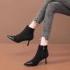 Botas curtas estilo francês pequeno e perfumado outono e inverno salto alto botas Chelsea botas finas salto fino bico fino veludo nude e botas nuas