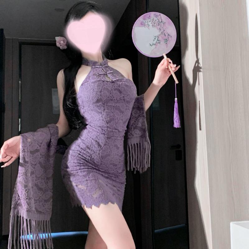 Sex underwear sexy purple pure desire cheongsam free perspective uniforms can be worn outside loungewear women