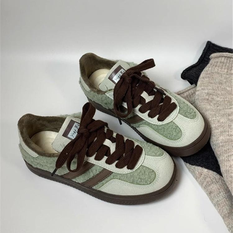 Retro German training shoes two cotton board shoes women's 2025 new platform student white shoes versatile chic fluffy shoes