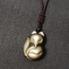 Colar com pingente de raposa de nove caudas esculpido à mão Amuleto chinês Cordão longo Colar de raposa Jóias da sorte para mulheres e homens Presente