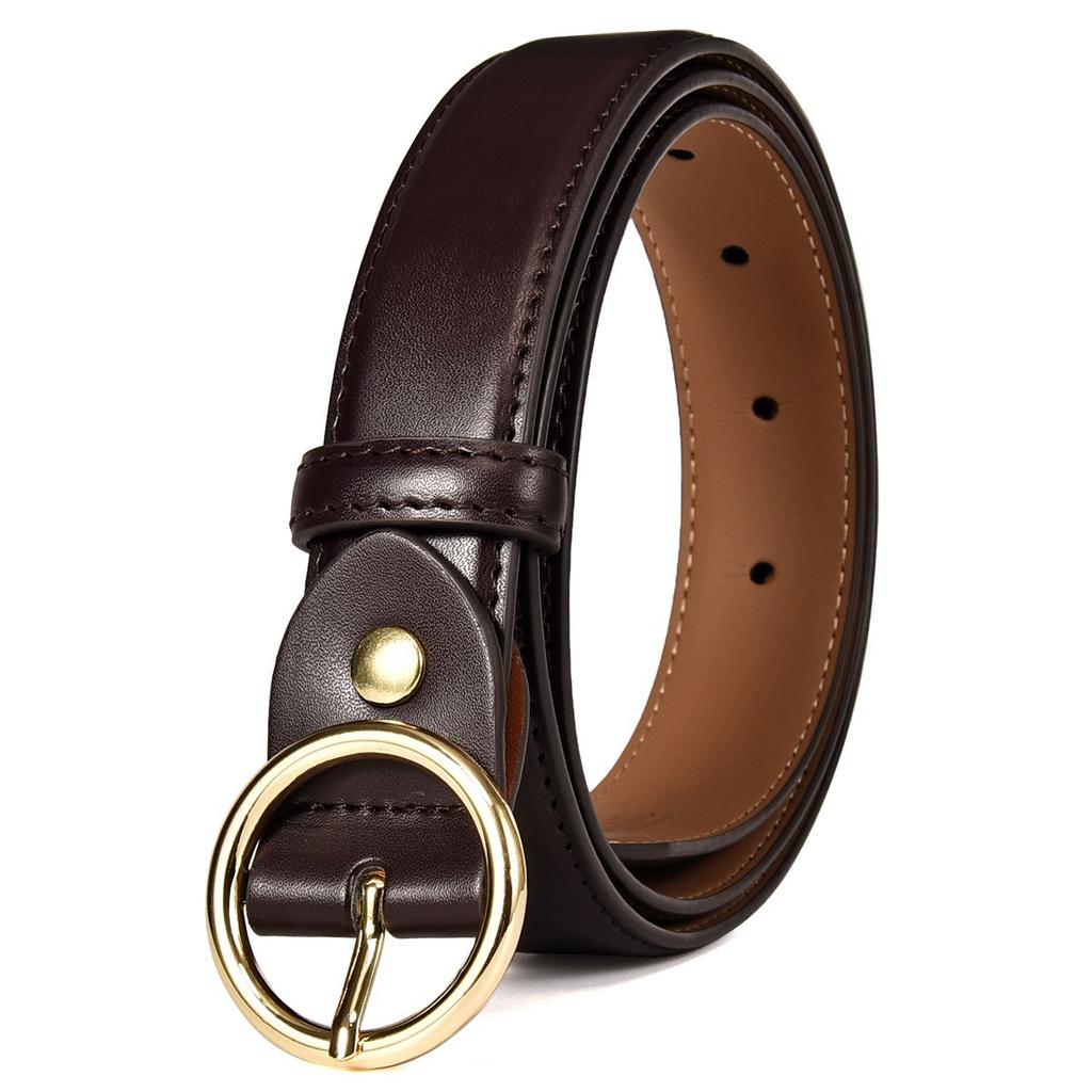 Belt Korean Version Punching Needle Buckle Round Genuine Leather Cowhide Slim Lady Belt Women with Car Wire Belt