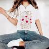 T-shirt de Verão Feminina de Manga Curta com Decote Redondo e Estampa Floral