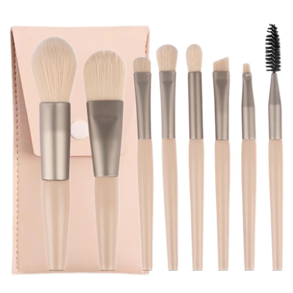Conjunto de Pincéis de Maquilhagem com Fibra Premium e uma Bolsa Cosmética para Transporte Fácil e Perfeito para o Dia a Dia para Iniciantes 8 Peças Cerdas, Pincéis Ultramacios, Uso,