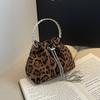 Leopard print bag women's autumn and winter new niche design retro chain messenger bag pleated bucket bag