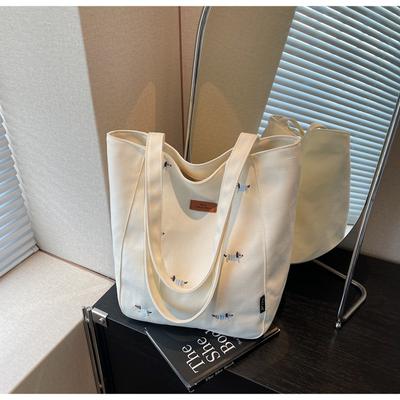 Embroidered canvas bag women's large-capacity new summer versatile casual shoulder bag college student tote bag