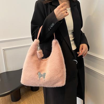 Large capacity plush bag, new women's bag, lazy premium plush shoulder bag, commuter tote bag.