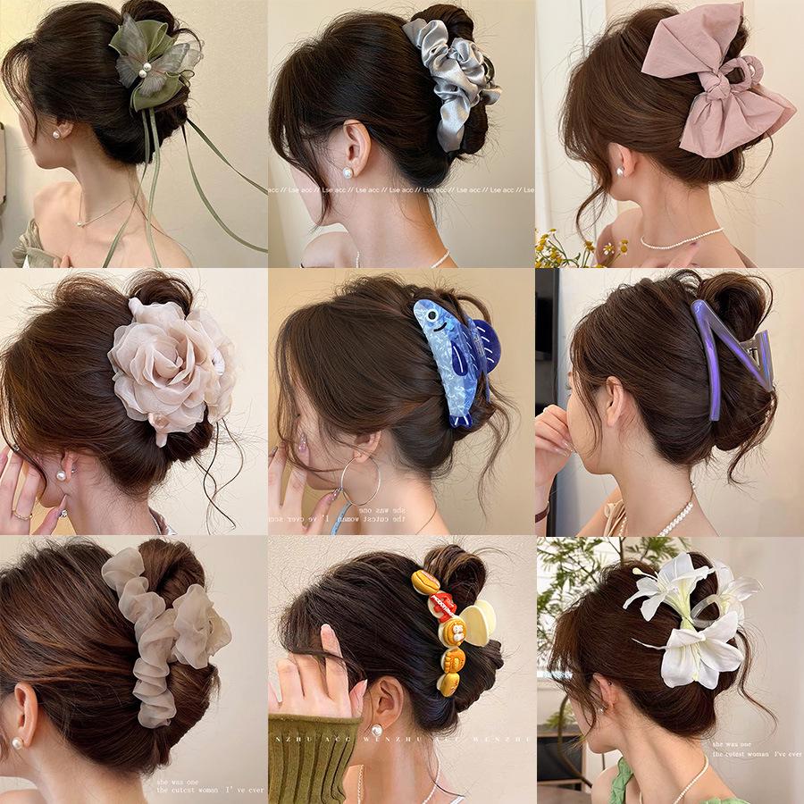 Korean High-End Acrylic Flower Hair Clip for Women - Large Shark Clip for Voluminous Styles
