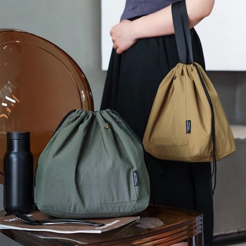 1 peça Bolsa de Almoço Lona de Algodão Grande Cor Sólida Cordão Portátil Térmica Isolada Armazenamento de Piquenique Bolsa Caixa Bento
