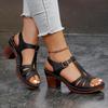 Fashion High Heel Sandal for Women Low-Heeled Shoes With Strap Buckle Large Size Suit Female Beige Open Toe 2025 Summer High-heeled Low-