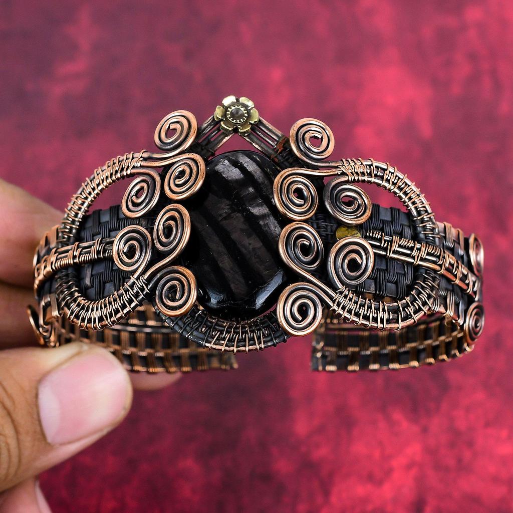 Hypersthene bangle copper wire wrapped adjustable cuff bracelet copper jewelry real gemstone handmade bangle wire wrap jewelry gifts for mom