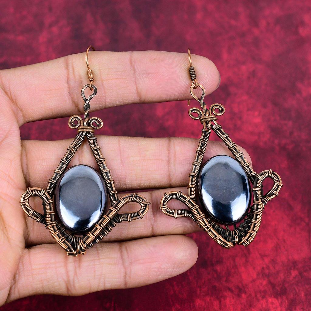 Shungite earring copper wire wrapped earring handmade original gemstone earring shungite copper jewelry engagement gifts birthstone jewelry