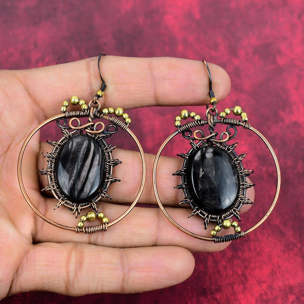 Hypersthene gemstone earring copper wire wrapped earrings handmade earring copper jewelry gifts for wife designer earrings wire wrap jewelry