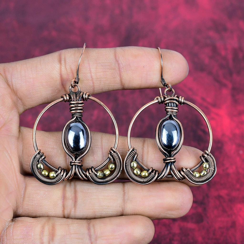 Shungite earring copper wire wrapped earring handmade jewelry natural gemstone earring copper wire wrap jewelry gifts for mom dangle earring