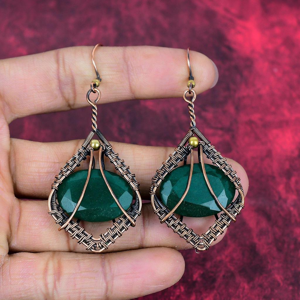 Faceted zambian emerald earring copper wire wrapped jewelry gemstone earring copper earring anniversary gifts handmade jewelry drop earrings