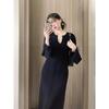 Temperament black V-neck knitted dress, high-end sense, super good-looking bottom skirt, skirt with coat in winter