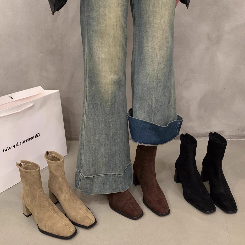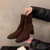Zhike high-heeled Korean small ankle boots suede Martin boots women's shoes 2025 new autumn and winter square head thin short boots
