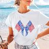 Camisetas Femininas com Design de Laço Coquette Bandeira dos EUA 4 de Julho Gola Redonda Roupas de Verão Camisas e Blusas Coquette com Laço para Homens 4 de Julho