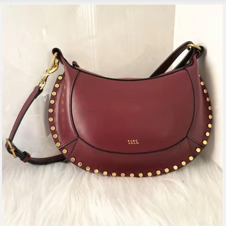 Bolsa Clássica Meia-Lua com Rebites Dourados - Bolsa de Mão Retrô com Alça de Ombro Única