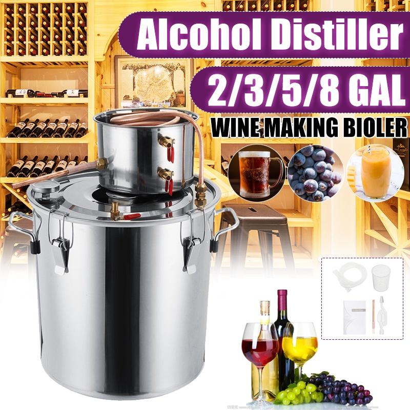2/3/5/8 Galões Aço Inoxidável Destilador Eficiente Moonshine Álcool Destilador DIY Casa Água Vinho Óleo Essencial Kit de Fermentação Conjunto