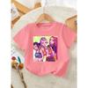 Black short-sleeved 3D printed T-shirt for girls, round-neck casual T-shirt