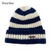 Stripe Winter Hats Thickened Knitted Hat Casual Beanie Caps for Men Women