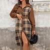 Casual Loose Plaid Long Dresses For Women Fashion Women's A-Line Midi Dress Elegant Vintage Female Dresses