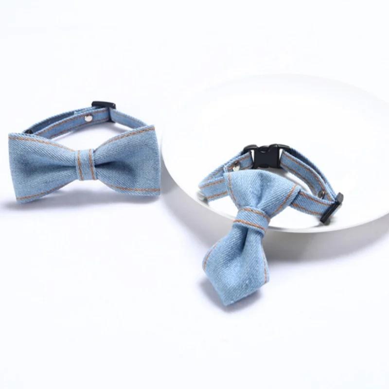 Pet Bow Tie Adjustable Cat Necktie Denim Puppy Collars Fashion Cat Neck Bow Pet Neck Tie Party Wedding Decoration Dog Accessorie