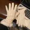 Suede Brown Plush Gloves Women's Autumn and Winter Thickened Plush Warm and Cold Outdoor Riding Gloves