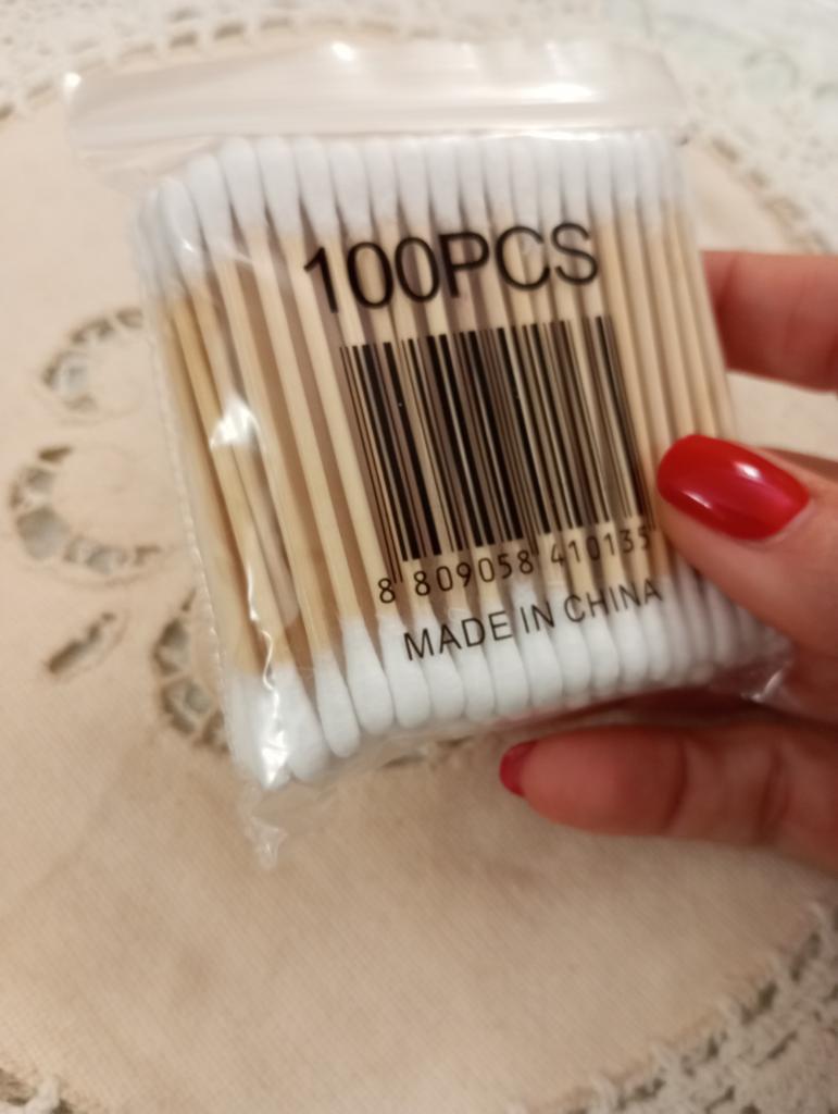 HASTES DE ALGODÃO cotonetes de algodão natural não branqueado, ideais para a higiene do nariz e dos ouvidos de bebês e adultos. Nós meninas podemos usá-los também para remover a maquiagem ou para esfumar sombras.. Chegou em 14 dias com envio rastreado. Embalagem : saco plástico zipado e resselável . Conteúdo 100 peças. Compra recomendada 👍