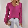 V-Neck Crochet Jacquard Sweater: Women's Loose Fit, Long Sleeve Pullover for Spring & Autumn