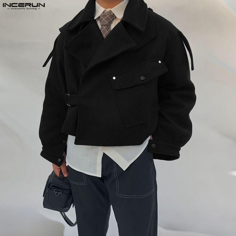 INCERUN Autumn Winter Men Lapel Long Sleeve Loose Casual Jackets Short Coats