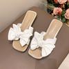 One-word sandals seaside vacation beach shoes women's summer wear 2025 new skirt fairy style bow slippers