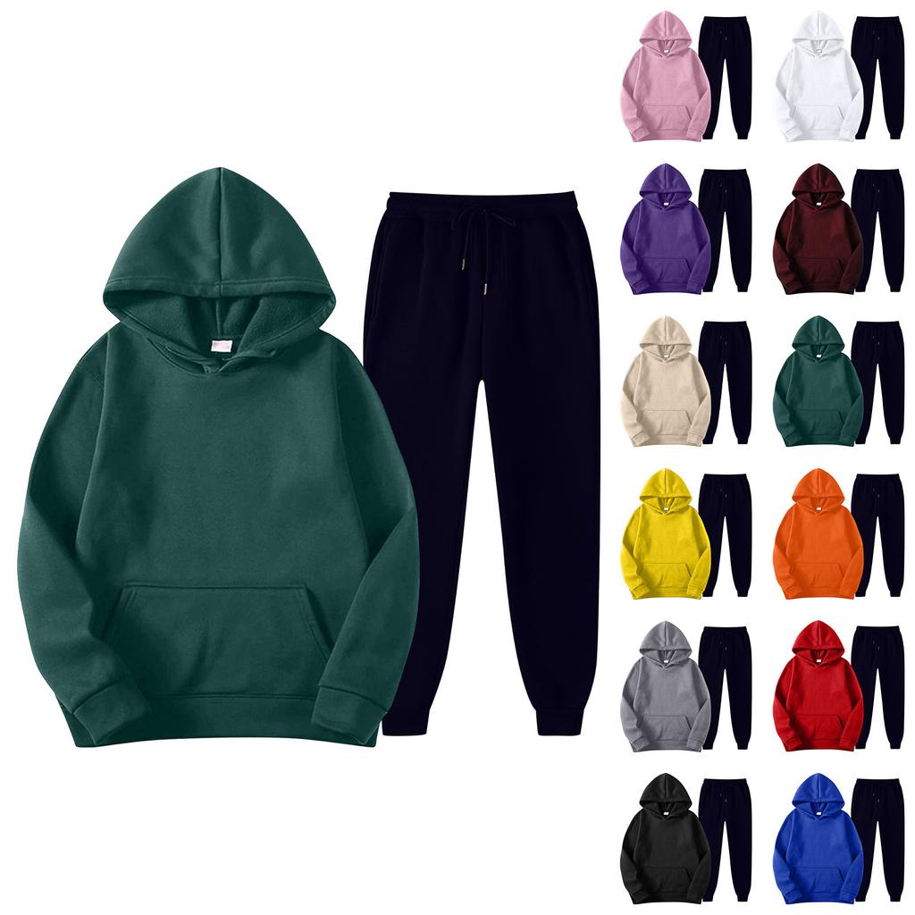 Masculino com capuz esportes agasalho unisex duas peças correndo roupas de manga longa pulôver hoodies moletom + moletom conjunto