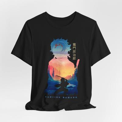 Silhouette Tanjiro T-Shirt Tee Tops, Anime Graphic T-Shirt, Casual Wear, Unisex Jersey Shirt