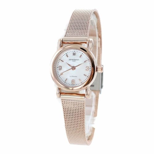 Description ★French-born brand PIERRE TALAMON A beautiful pink gold-colored mesh type bracelet with a white shell dial. A small case decorated with natural diamonds at the 12 o'clock position. This is a classy ladies' watch that will be a great addition to any woman's wrist. It is a cute item that can be worn not only with feminine clothes, but also as a focal point with a rough casual outfit. A design that can be used in various situations such as work, dates, and private life. Recommended as a special day gift, surprise present, girlfriend, friend, mom, Mother's Day, Christmas, birthday gift.