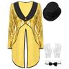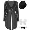 Womens Magician Costume Set Long Sleeve One Button Patchwork Sequin Tailcoat Hat Bow Collar Gloves Halloween Cosplay