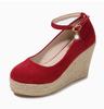 2025 Novos sapatos de camurça vermelha, scarpins peep toe, sandálias plataforma de cunha, sapatos femininos de bico fino, salto alto, plataforma, sapatos espadrilles