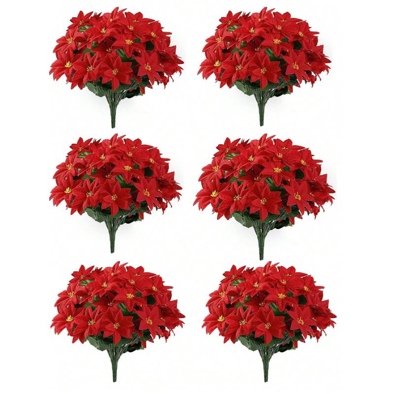 2pcs Poinsettia Artificial Poinsettia Flowers, 7 Heads Red Christmas Flowers, Fake Shrub Poinsettia For Home Christmas Tree Table Wedding Decoration