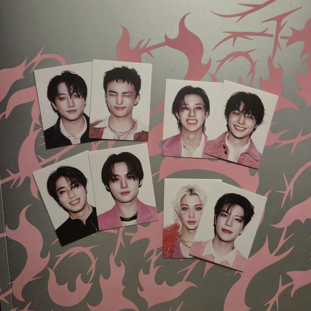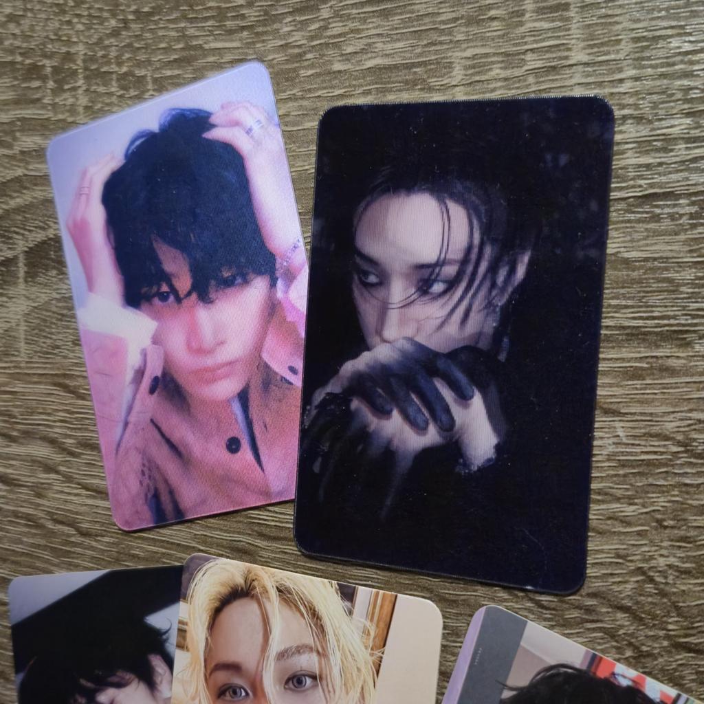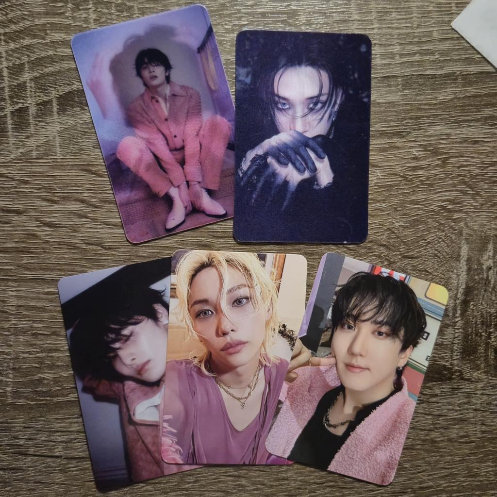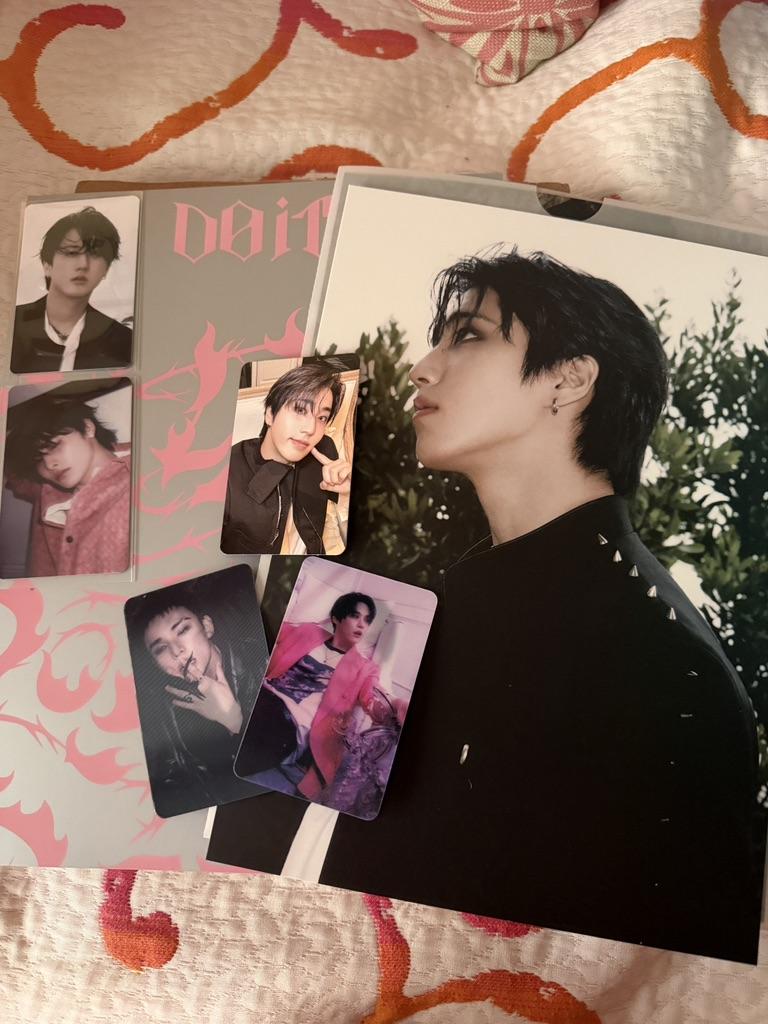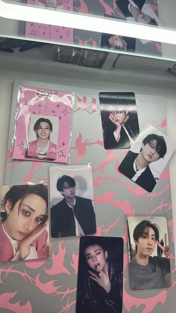 Eu amooooo! Consegui meu bias Hyunjin e estou tão feliz! (Mas eu amo todos eles) E eu não sabia que também receberia coisas de pré-venda, mas tudo bem, estou MUITO feliz. Da outra foto, estão lá também o Karma Chan, Felix e Seungmin, e eu amo eles