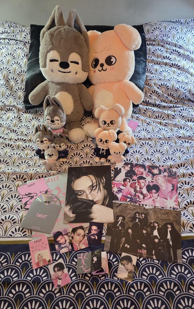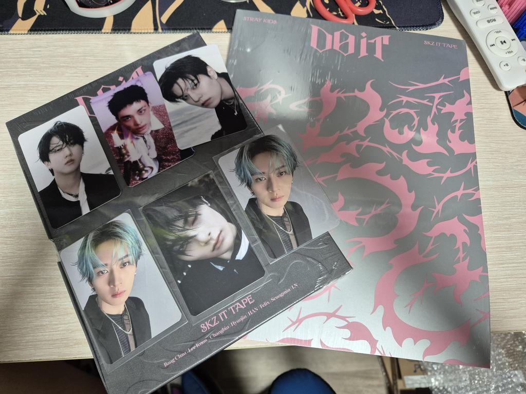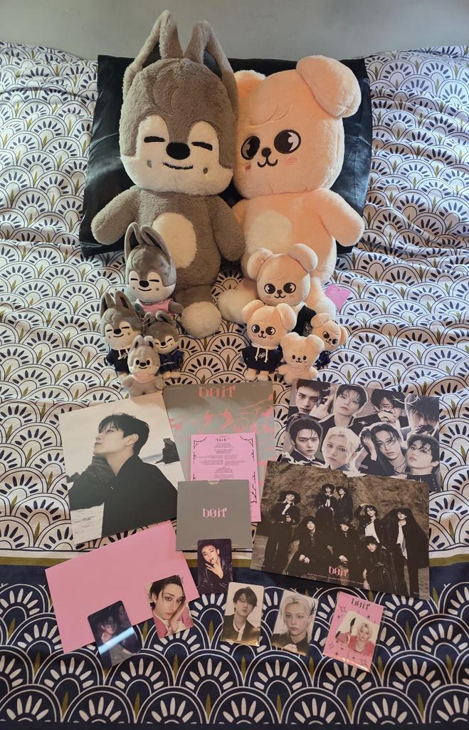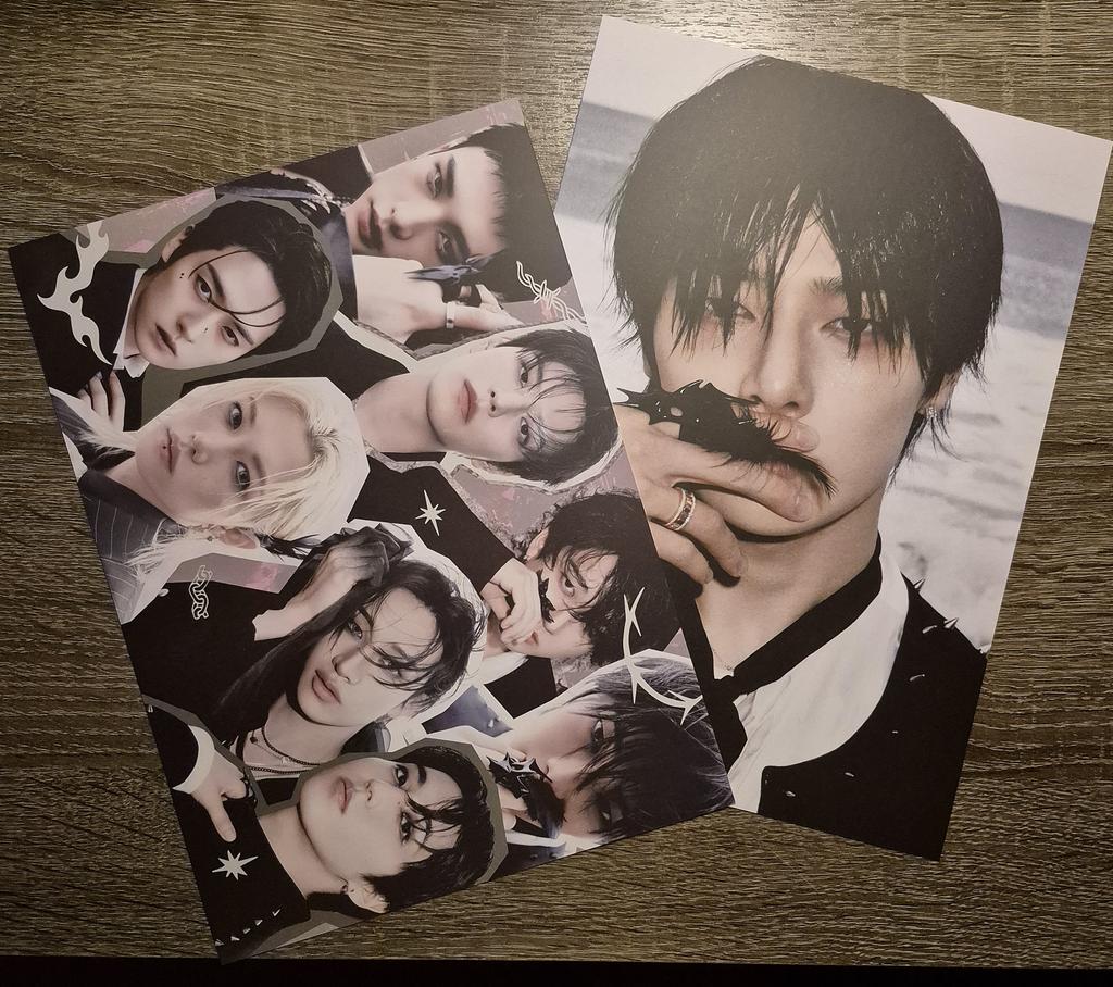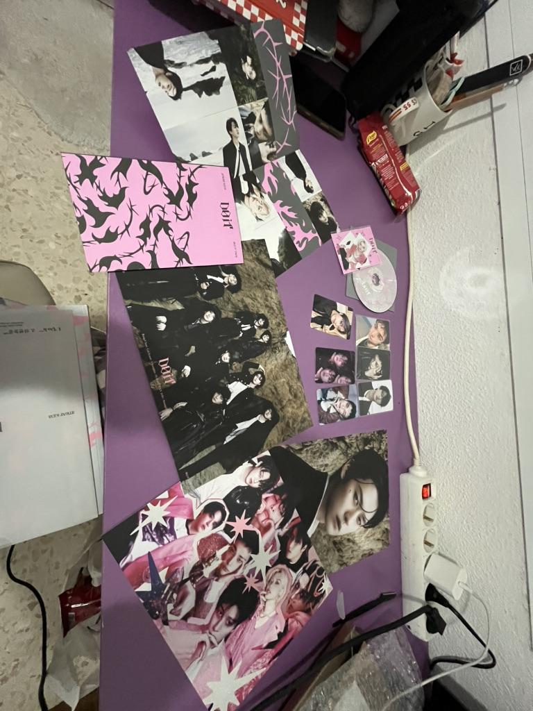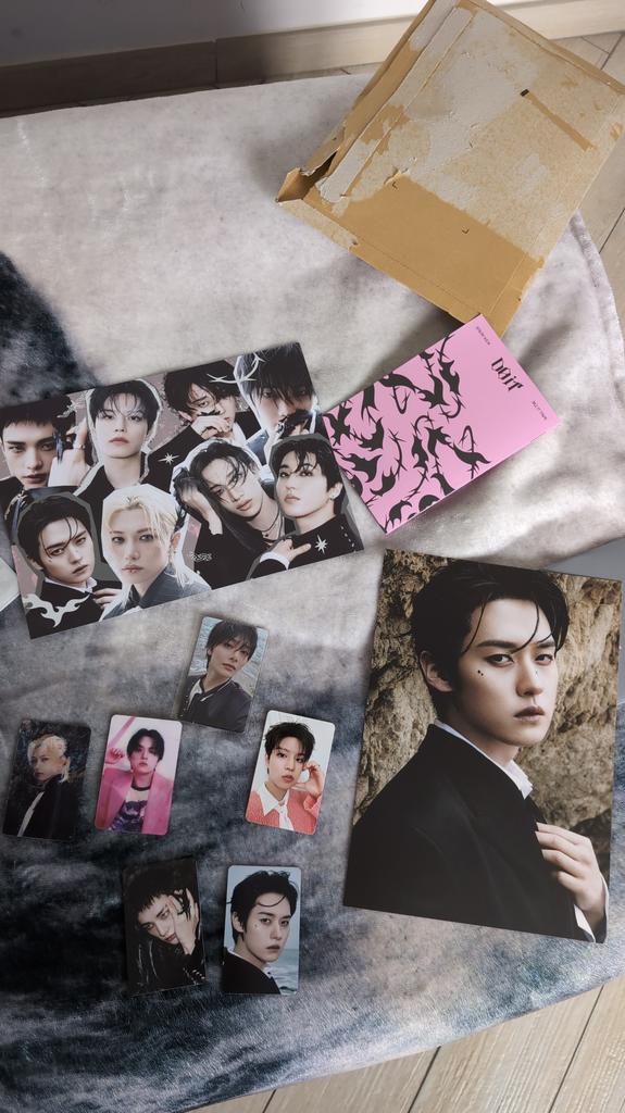 Eu amooooo! Consegui meu bias Hyunjin e estou tão feliz! (Mas eu amo todos eles) E eu não sabia que também receberia coisas de pré-venda, mas tudo bem, estou MUITO feliz. Da outra foto, estão lá também o Karma Chan, Felix e Seungmin, e eu amo eles