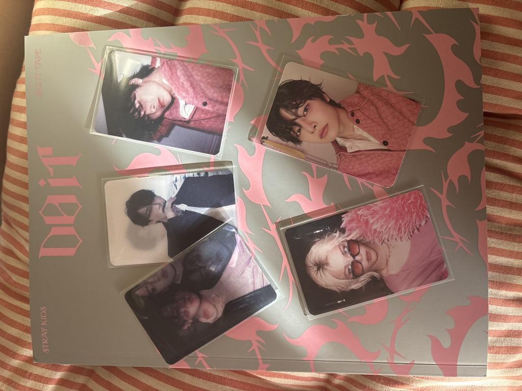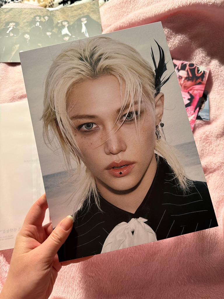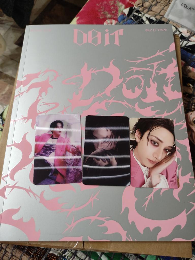 Muito obrigado por tudo obrigado pelos PCs de presente 😭💕que o álbum não poderia ser mais bonito de verdade e o melhor que me saiu meu primeiro PC do do It de hyunjin e o lenticular de Félix e Bangchan preciosos incrível 🩷🩷🩷