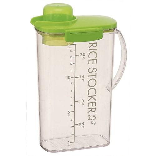 Skater Rice Storage Container, 2.5kg Capacity, Green, Slim, Fits Refrigerator Door Pocket, Lightweight, Vertical, with Cup Lid, Made in Japan, CG27RBI