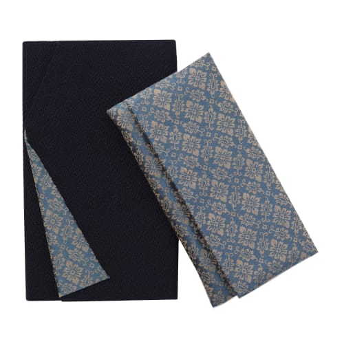 Tamane Fukusa and Prayer Beads Bag Set, Back-Surfaced, Navy Blue, with Small Hanabishi Aoi Design, Unisex, Suitable for Celebrations and Condolences,