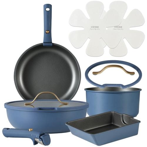 CAROTE 10-Piece Frying Pan Set, Titanium-Coated, Induction and Gas Compatible, Free of PFOA and Other Harmful Substances, 5-Layer Construction, Lightw