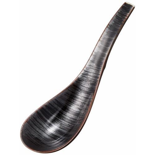 Arita Ware Toetsugama "Ultimate Renge" Ramen Spoon, Tenmoku Nagisa, Approx. 16cm Diameter, Lotus Flower Design, Ceramic, Dishwasher Safe, Made in Japa