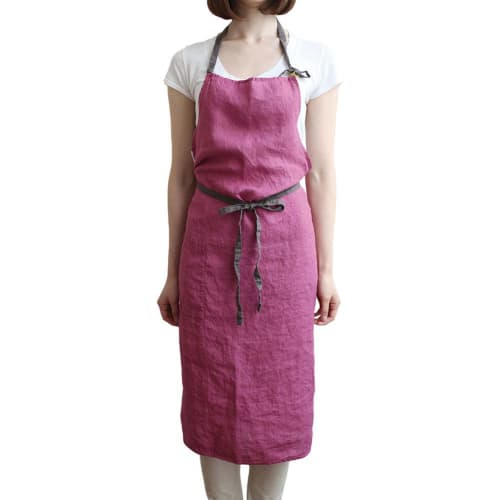Lino e Lina Manon A266 Magenta Full Apron, Perfect for Kitchen, Men's and Women's, Solid Linen, Simple, Long Length