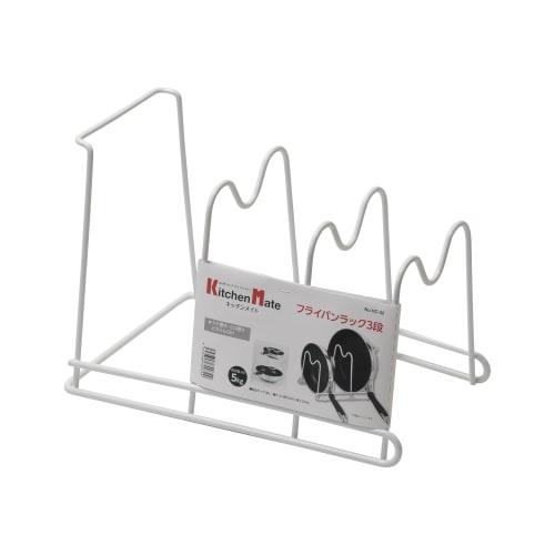 Pearl Metal Storage Shelf, Frying Pan Rack, 3 Tiers, Kitchen Mate, White, HC-32